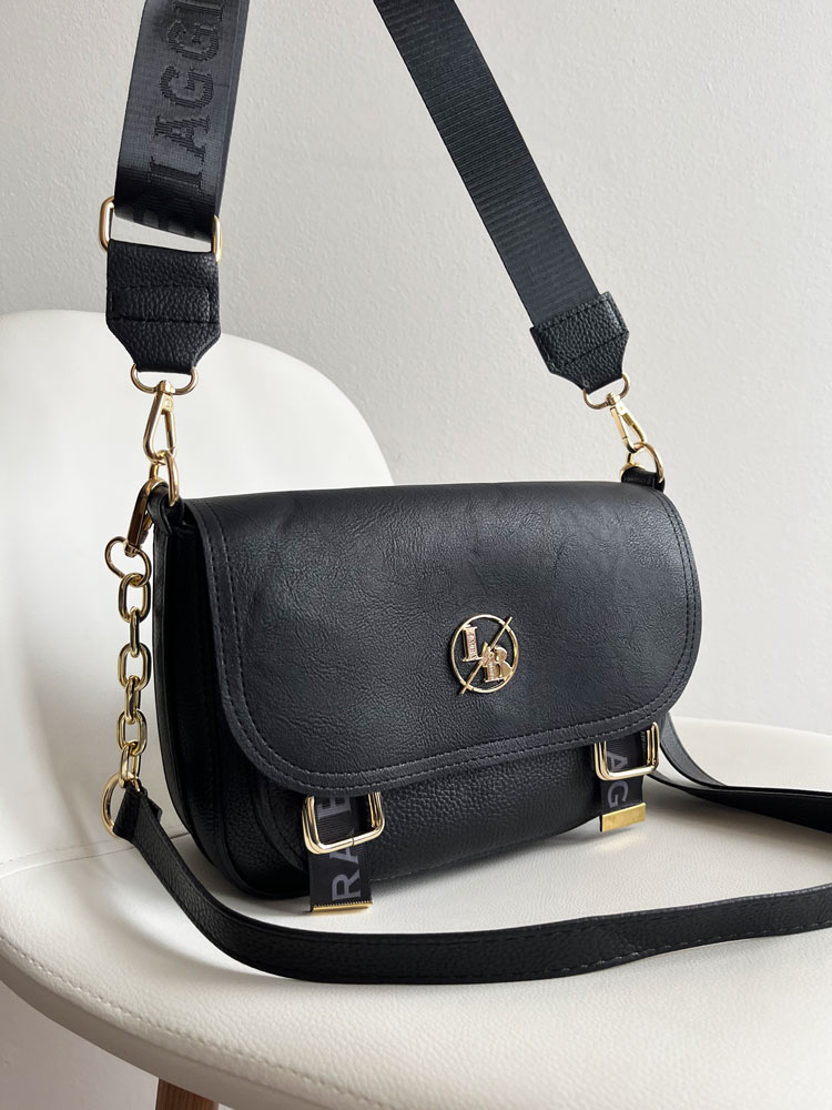 Táto stredne veľká crossbody kabelka je dokonalým spojením štýlu a praktickosti. Výrazné zlaté logo Laura Biaggi na prednej strane dodáva kabelke luxusný vzhľad, zatiaľ čo kvalitné spracovanie a vystužený dizajn zaručujú krásne držanie tvaru.