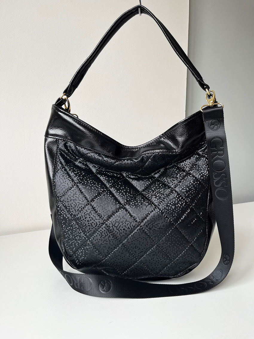 Veľká športovo-elegantná kabelka na rameno od značky Grosso je ideálnym doplnkom pre ženy, ktoré hľadajú spojenie štýlu a pohodlia. Je nevystužená, nenáročná na nosenie a vďaka priestrannosti pojme všetko, čo potrebuješ. Táto kabelka je dokonalým partnerom pre dynamický životný štýl – štýlová, praktická a nezameniteľná!