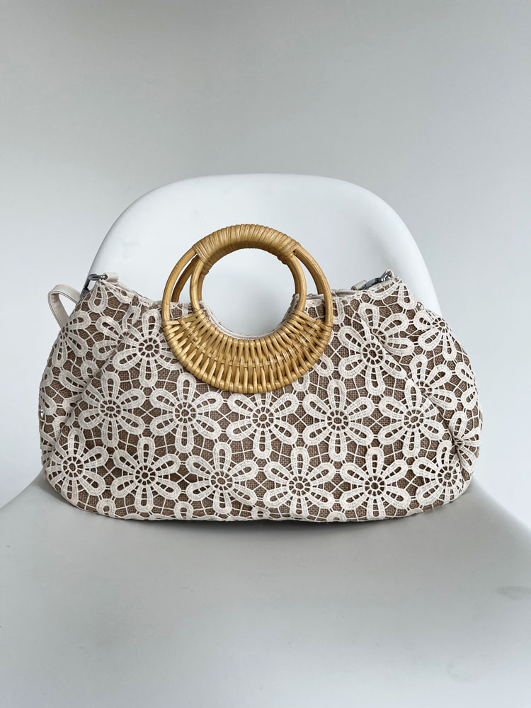 Čipkovaná kabelka do ruky a košík na leto béžový