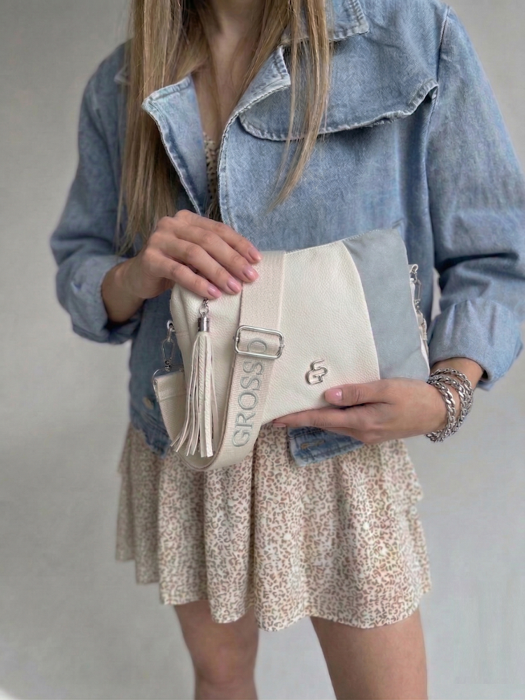 Štýlová crossbody kabelka od slovenského výrobcu GROSSO je dokonalá voľba pre ženy, ktoré hľadajú štýl a praktickosť v jednom. Táto kabelka má priestranný tvar, takže aj keď je malá, vnútorný priestor je po otvorení veľmi prehľadný. Je mierne vystužená, ľahká a pohodlná na nosenie. Zlaté logo a vrecko na zips na prednej strane pridávajú eleganciu a funkčnosť.