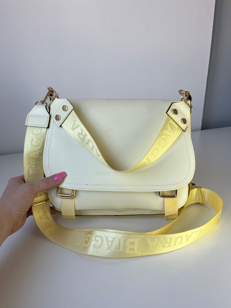 Crossbody kabelka Laura Biaggi, ktorá dlhodobo patrí k našim najpredávanejším modelom. Obľúbená je pre svoj športovo-elegantný dizajn a kvalitné vypracovanie. Kombinácia koženky so zlatými kovovými detailami jej pridávajú nádych luxusu, ktorý poteší každú zákazníčku. Kabelka sa dá pohodlne nosiť na ramene vďaka kratšej rúčke alebo ako crossbody, čo z nej robí ideálny doplnok pre každodenné nosenie.