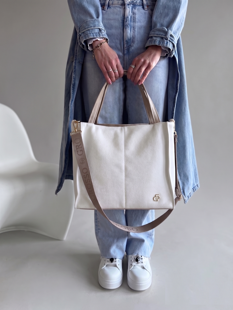 Biela kabelka na rameno GROSSO je ideálnou voľbou pre ženy, ktoré hľadajú spojenie elegancie, praktickosti a dizajnu, ktorý sa hodí na každodenné nosenie. Táto veľká dámska kabelka z kvalitnej ekokože vyniká pevnou, mierne vystuženou konštrukciou, vďaka ktorej si dlhodobo zachováva svoj tvar a odolnosť.