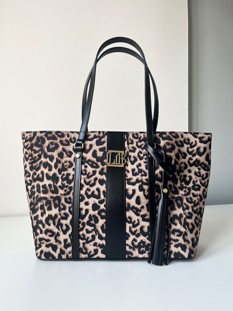 Predstav si túto veľkú kabelku od Laury Biaggi ako svoju novú najlepšiu kamarátku. Štýlová, priestranná a vždy pripravená – presne ako TY. Matná koženka v kombinácii so zvieracím vzorom jej dodáva šmrnc a vystuženie zaručí, že aj po dlhom dni drží tvar lepšie ako Tvoj plán na víkend. Vnútorný priečinok na tablet Ťa zachráni pred večným hľadaním techniky, a zlaté logo s hravým strapcom na prednej strane upúta na prvý pohľad. S ňou máš všetko na dosah a v štýle!