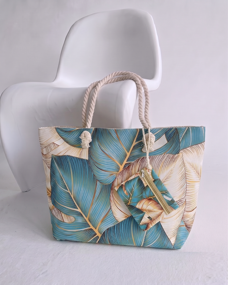 Plážová taška s potlačou listov – veľká letná kabelka