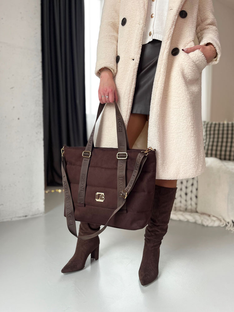 Veľká semišová kabelka od Laura Biaggi je perfektným spojením pohodlia a štýlu. Je vatovaná, takže je mäkká na dotyk a nie je vystužená, vďaka čomu je ľahšia. Kabelka sa pohodlne nosí, čo ju robí ideálnou spoločníčkou na každý deň – či už na prechádzku mestom, alebo na stretnutie s priateľmi. Premeňte každodenné chvíle na štýlové okamihy s touto univerzálnou kabelkou.